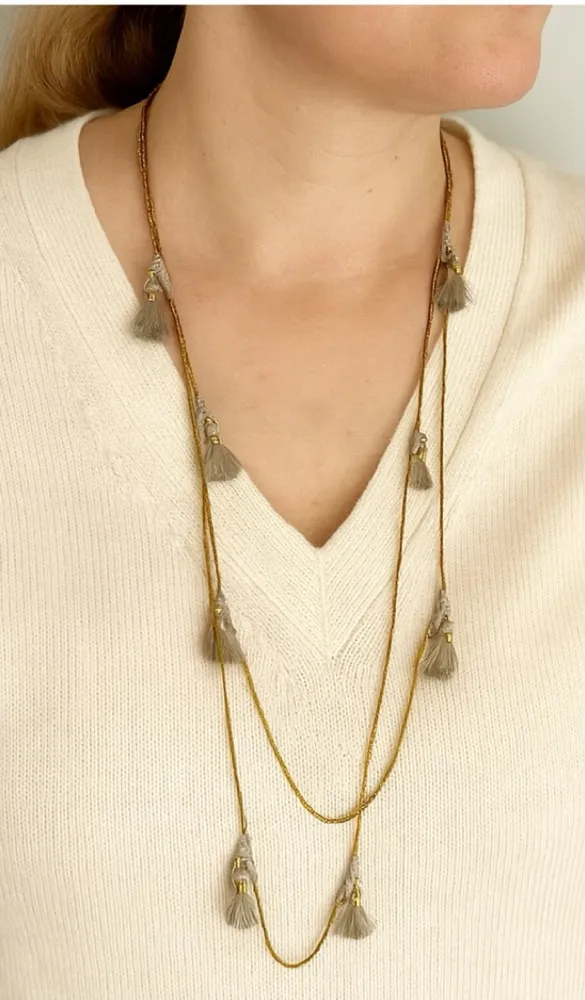 SHIRALEAH Lena Long Tassel Necklace NWT | New With Tags Anthropologie Collection Color: Grey The Lena Necklace is a beautiful gold-tone chain link necklace accented with knitted fabric tassels. Necklace can be worn long or wrapped to add additional texture and style interest. Features: long line, delicate, gold-tone, dark grey, tassels, pom poms, casual, layering, Anthro Brands, travel, bohemian, indie sleeze, simple, everyday femme New, never worn. Safely ships in original packaging with designer gifting box as shown in photos. Listing includes one (1) necklace. Knitted grey & gold-tone coloring varies in light. See detail photos for condition and color reference. Refer to separate listings for other SHIRALEAH Jewelry available in closet. BUNDLE multiple items for custom pricing and discounted shipping. Brand Information: Chicago-based Shiraleah has been at the forefront of spotting accessories trends for over 25 years. Aiming to connect street style with classic functionality, they design each piece with a focus on elevated color palettes and premium mixed materials sourced from around the globe. Delightfully boho with chic, everyday style potential!