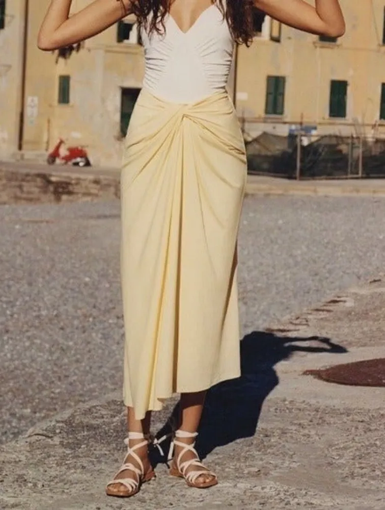 ANTHROPOLOGIE Significant Other Draped Yellow Midi Skirt Size 8 NEW Midi Skirt Beautiful Crisscross... Show more