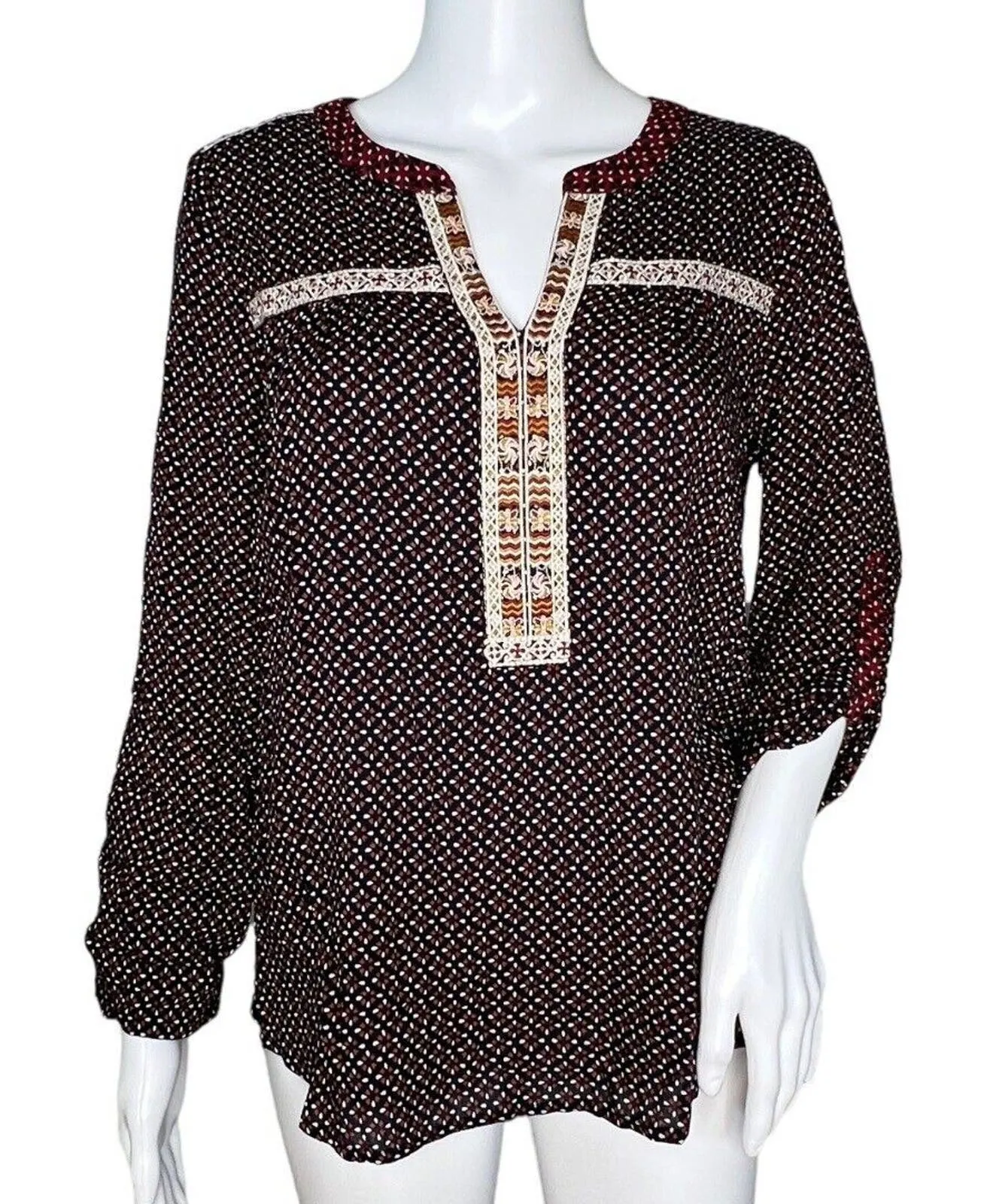 Skies are Blue Blouse Womens Small Petite Black Red Floral Mix Pattern Bohemian Women's Size Small... Show more