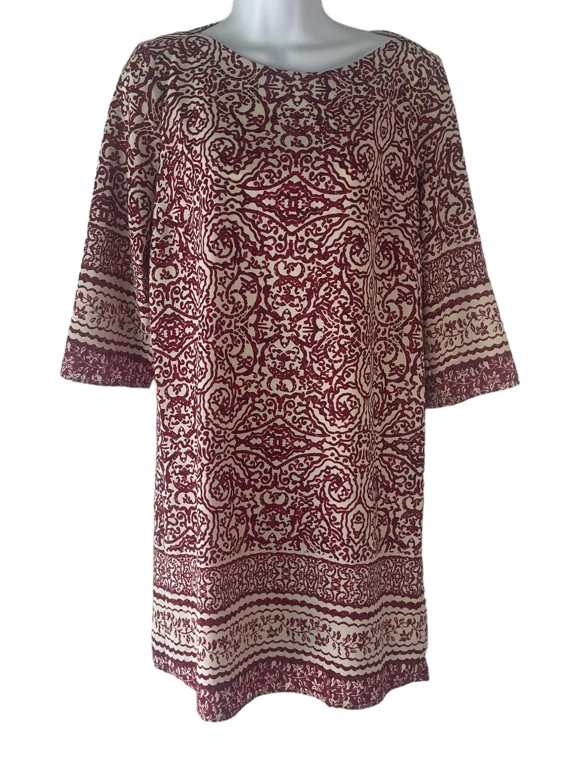 Anthropologie Skies Are Blue Size XS Red Printed Sheath Midi Dress Pit To Pit 18" Length 34" I... Show more