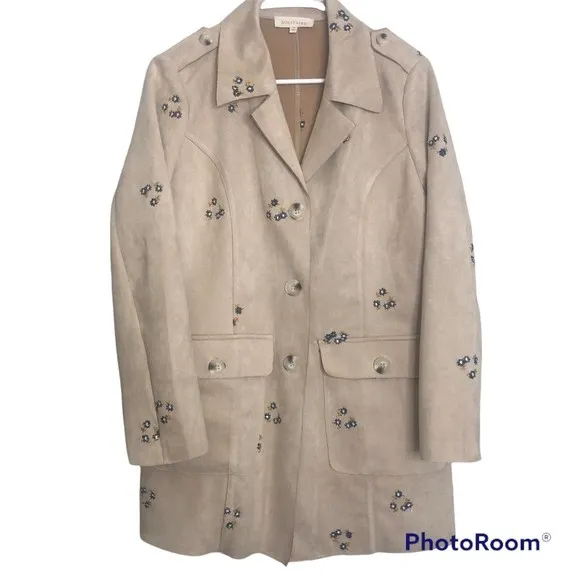 Anthropologie Solitaire Tan Embroider Floral Faux Suede Blazer Jacket in GREAT CONDITION, no signs o... Show more