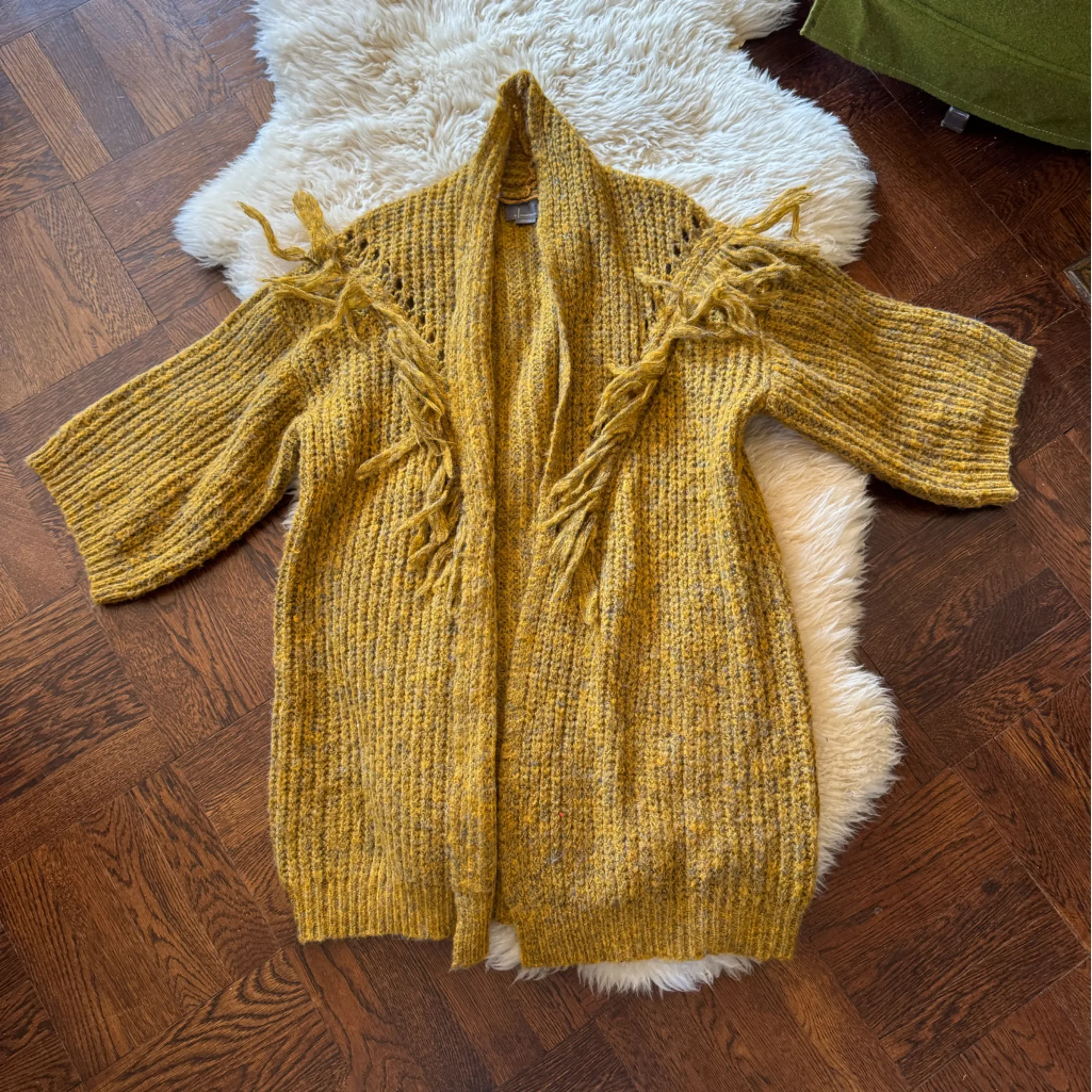 Anthropologie Stevie Marled Knit Fringed Kimono in golden tones. A great boho-chic touch to throw on... Show more