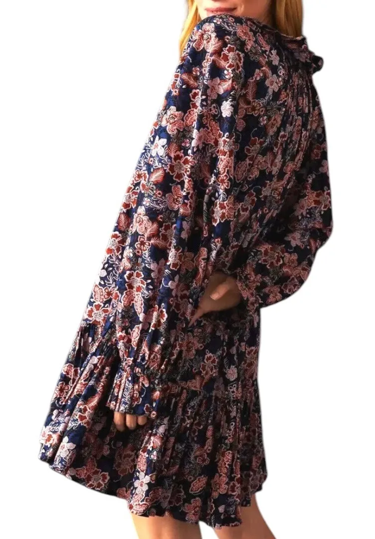 Anthropologie Sundry Boho Floral Print Long Sleeve Tiered Mini Dress. Size Small. 100% cotton Appro... Show more