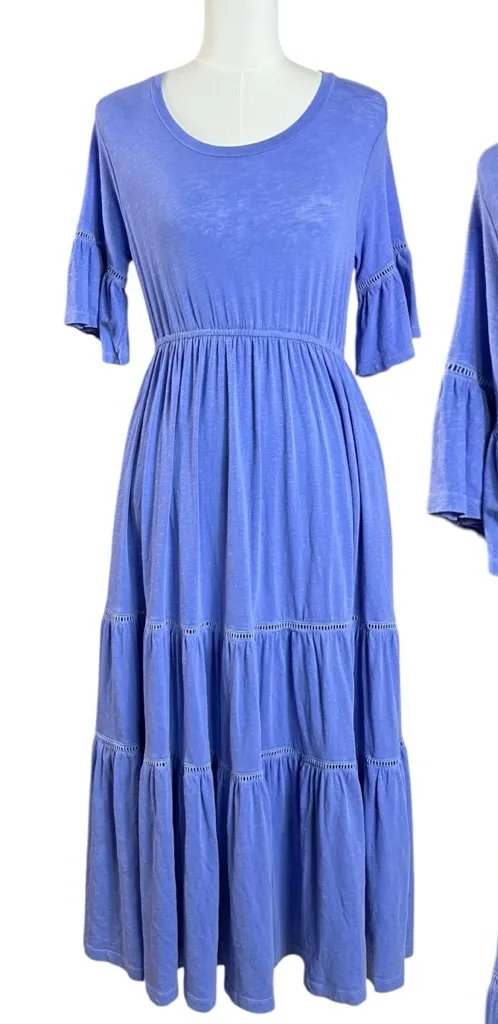 Anthropologie Sundry Tiered Maxi Dress in Turquoise MSRP $198 Size Small Laying Flat / Approxim... Show more