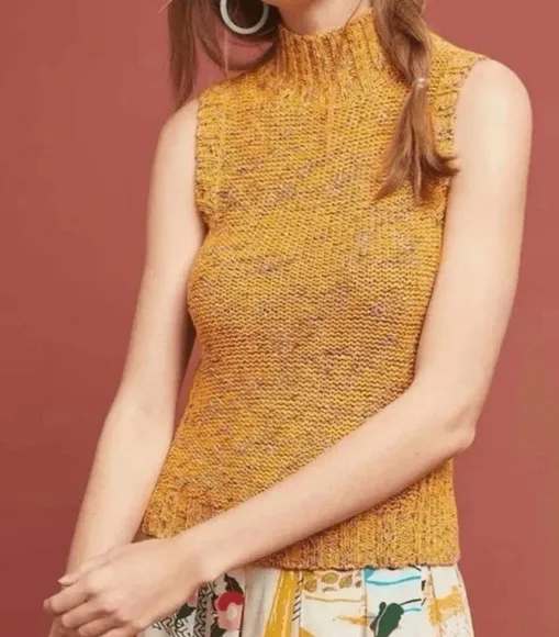 Anthropologie Sunrise Sweater Knit Tank Vest Women’s Size XS Marled Orange Mockneck - Textured - C... Show more