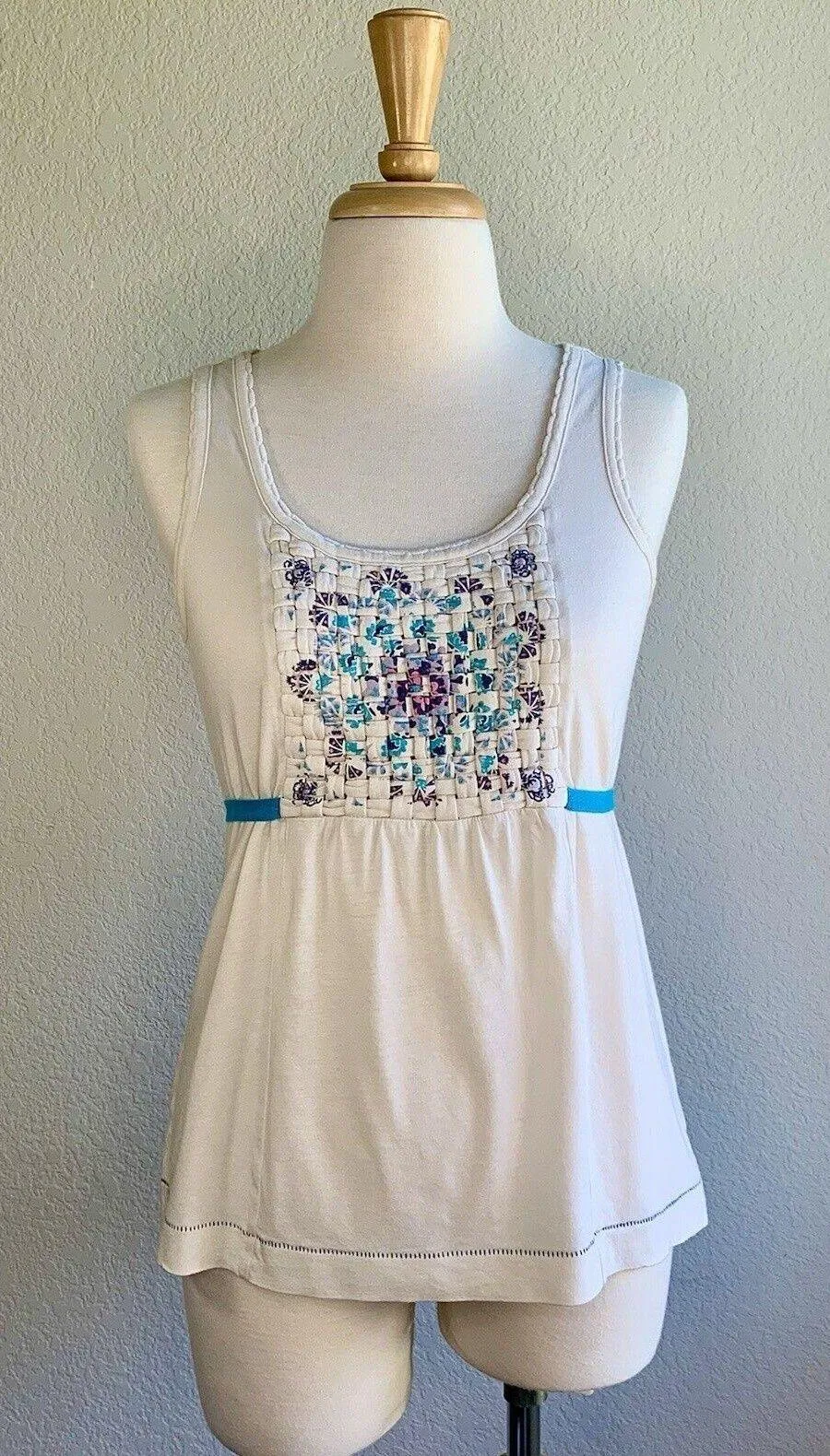 Anthropologie Womens Tie Back Tank Top Shirt with Basket Weave Fabric Chest Artisan-inspired top fe... Show more