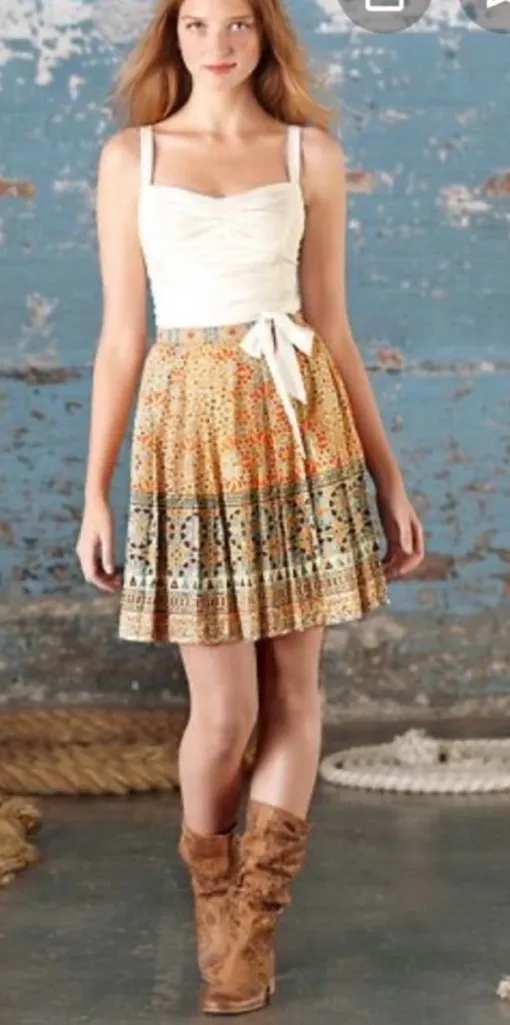 Anthropologie Tanvi Kedia Multicolor Beaded Pleated Skirt Great preowned condition Size 12 Approxim... Show more