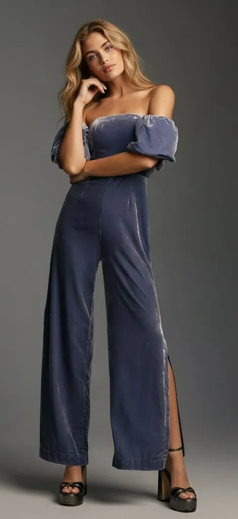 The Femme Velvet Jumpsuit by Anthropologie Blue Velvet Romper wide leg Long pants Stunning Jumpsuit... Show more