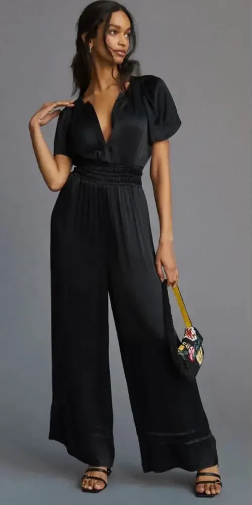 Anthropologie The Somerset Jumpsuit in Black Satin Flowy and flattering silky jumpsuit in the Some... Show more