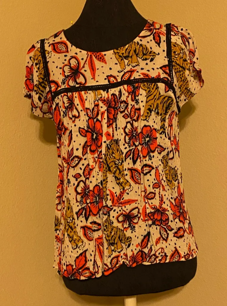 ❤️ Anthropologie Tiger Floral Print Blouse with Lace Trim Detailing Pink - $40 - From Kailey