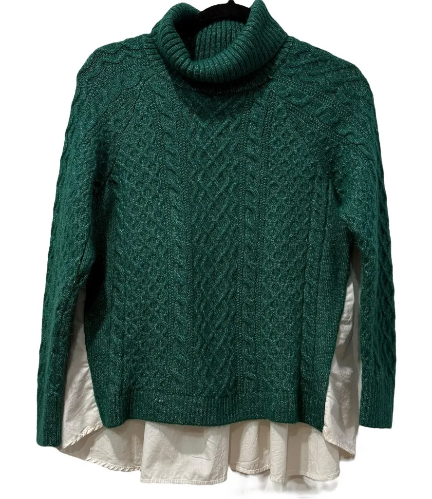 Anthropologie Turtleneck Green Cableknit Twofor Chunky Sweater Size XS Very very gently preloved co... Show more