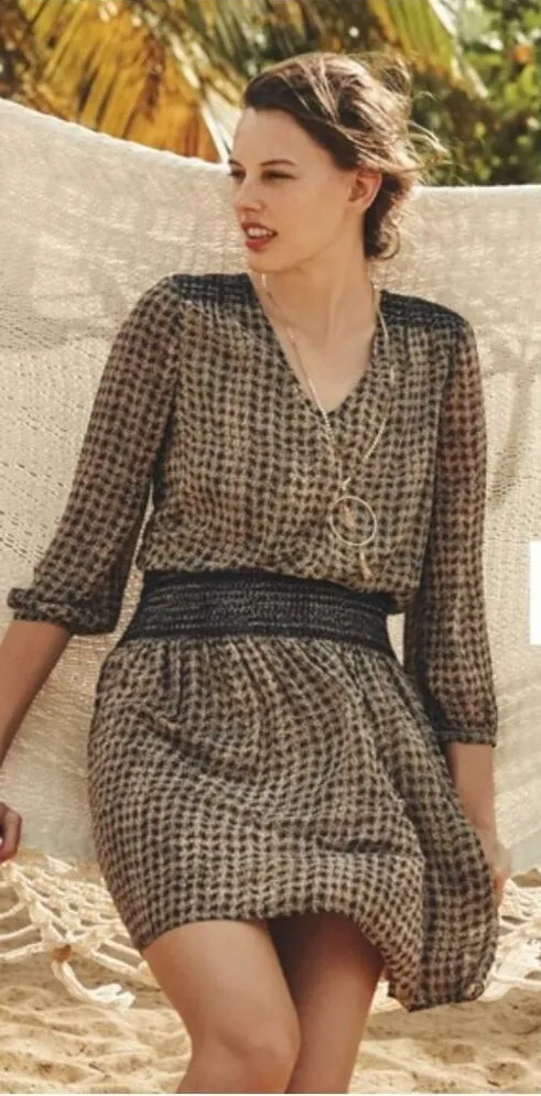 Description: Chic and feminine Vanessa Virginia dress featuring a beige and black geometric print. D... Show more