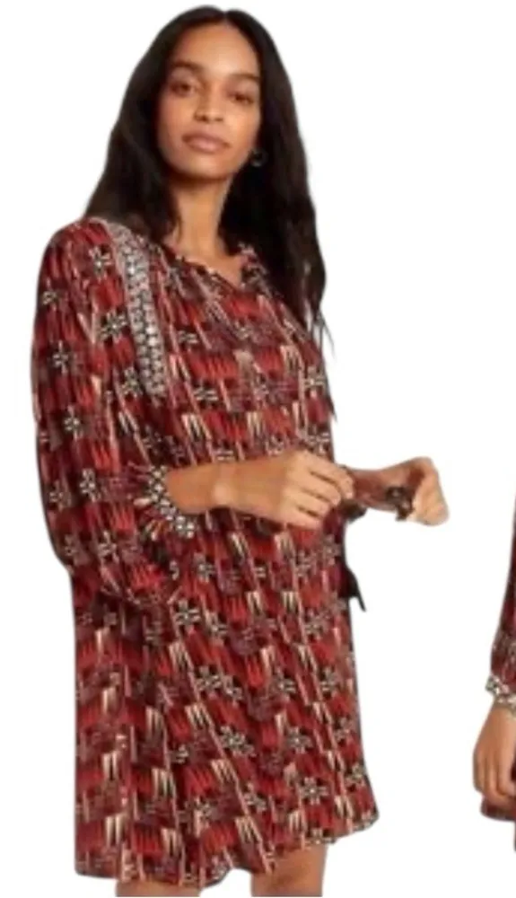 Anthropologie Verb Pallavi Singhee Sarah Red Beige Tunic dress Fall Thanksgiving Stunning Tunic dres... Show more