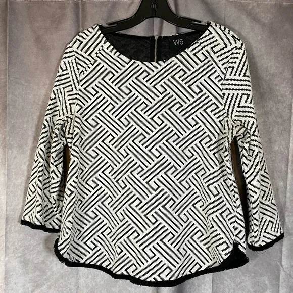 W5 Anthropologie Black And White Textured Geometric 3/4 Sleeve Blouse- MEDIUM - $12 - From LynandGray