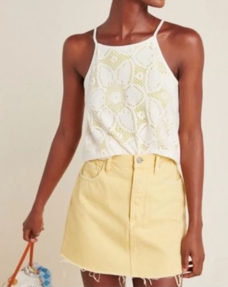 Anthropologie White Lace Overlay Cosette Top Size Small Eyelet Design High neck. Spaghetti straps.... Show more