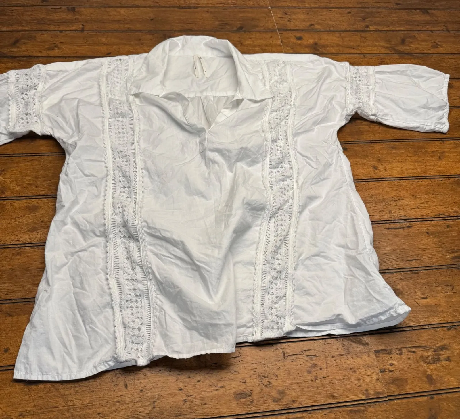 Anthropologie white tunic shirt with delicate lace trim. A relaxed fit v-neck top detailed with int... Show more