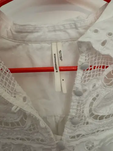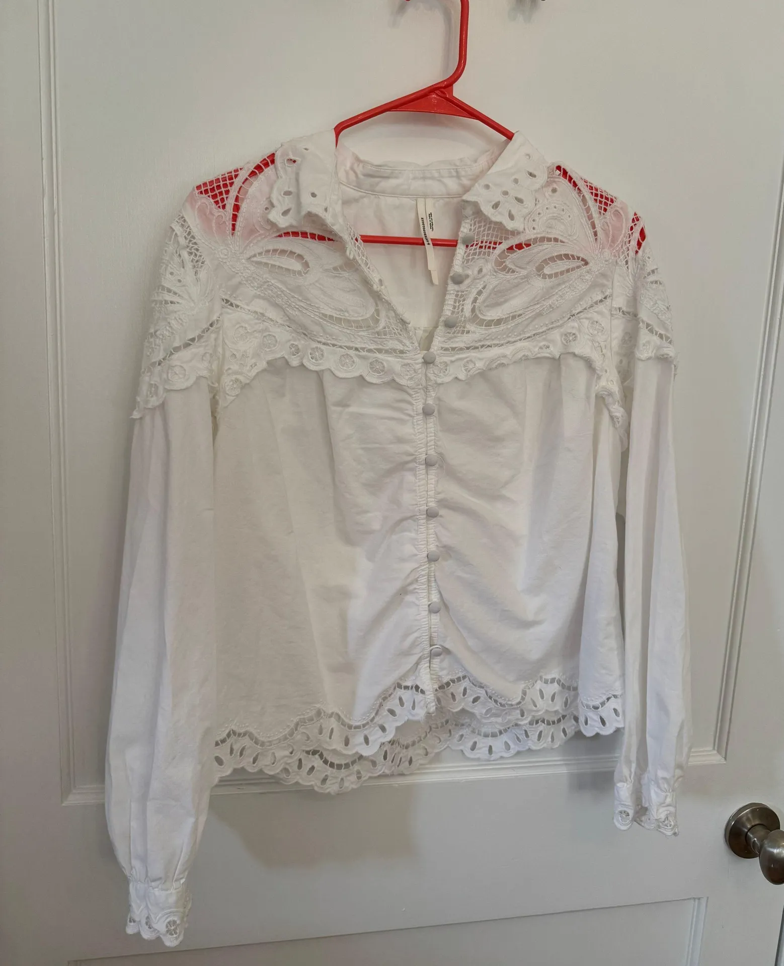 White lace collared Anthropologie button up top long sleeve so cute just doesn’t fit me