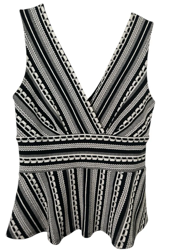 ANTHROPOLOGIE - WOMEN'S BLACK & WHITE SLEEVELESS CRISS CROSS V NECK TOP Size XS - $28 - From Shannon
