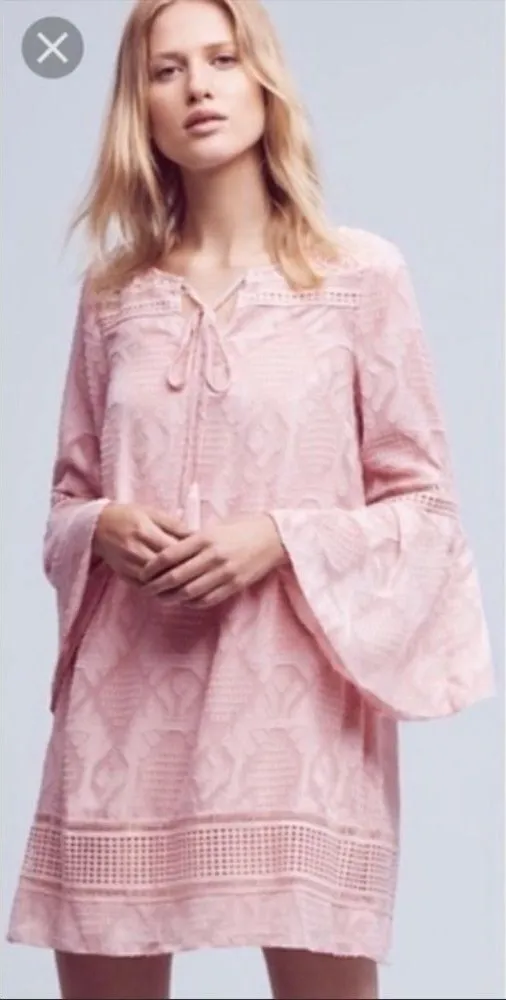 Anthropologie Women’s Floreat Esme Tassel Tunic Dress Light Pink Lace Size 6 Barbiecore Wedding Gre... Show more