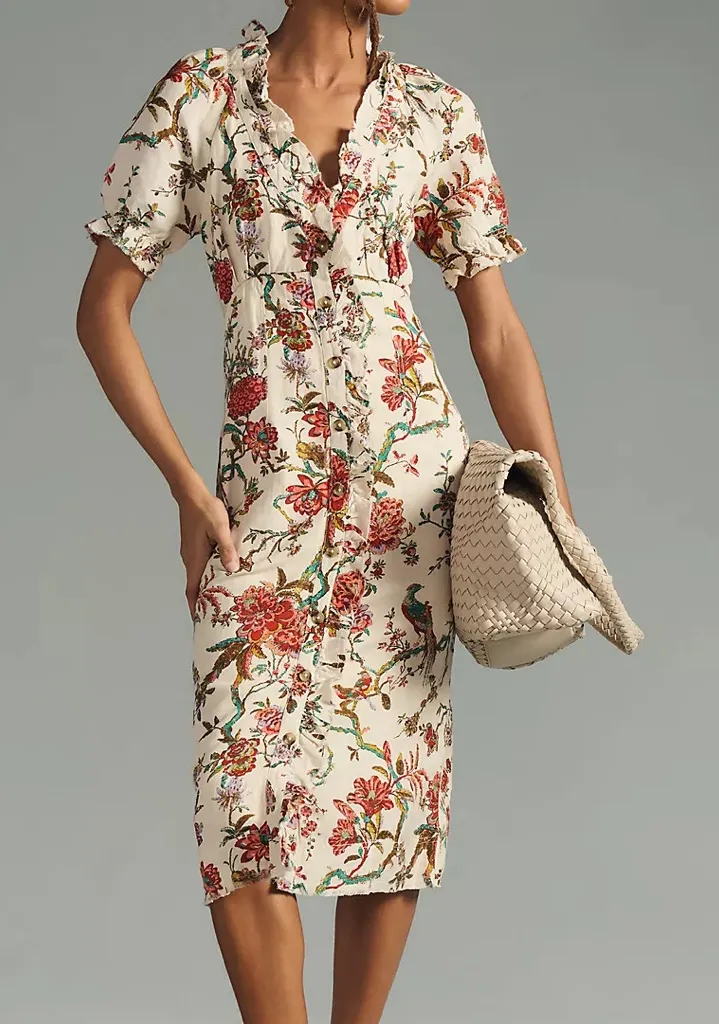 Anthropologie x Pilcro Ruffle-Collar Floral Dress | Size 2 🌼 Feminine and flattering, this Pilcro... Show more