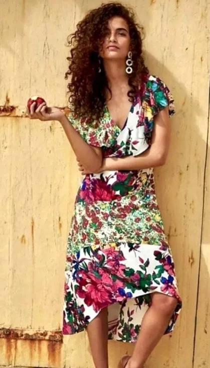Anthropologie x Tracy Reese bright mixed floral print ruffle midi dress. Size XS Pink - $50 - From Ann