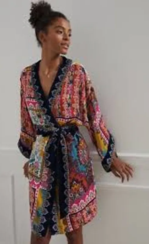 ANTHROPOLOGIE Sz XS S Zadie Multicolored Boho Velvet Trim Robe Kimono Duster. Preowned in excellent... Show more