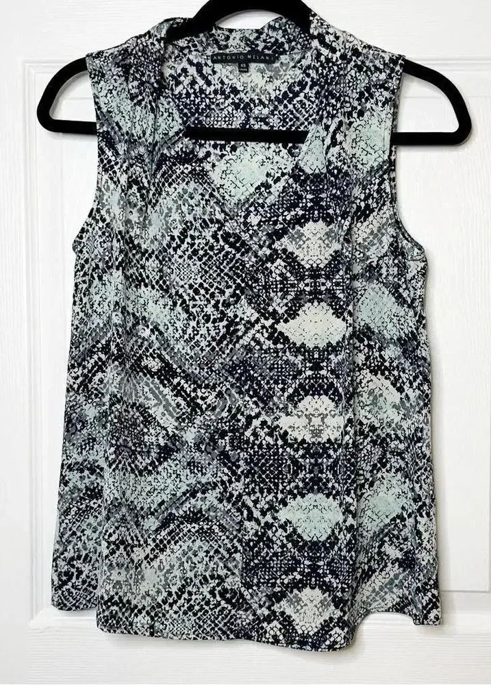 Eye catching blue snakeskin animal print sleeveless shell. Pullover style. *Size XS, approx: -18" a... Show more