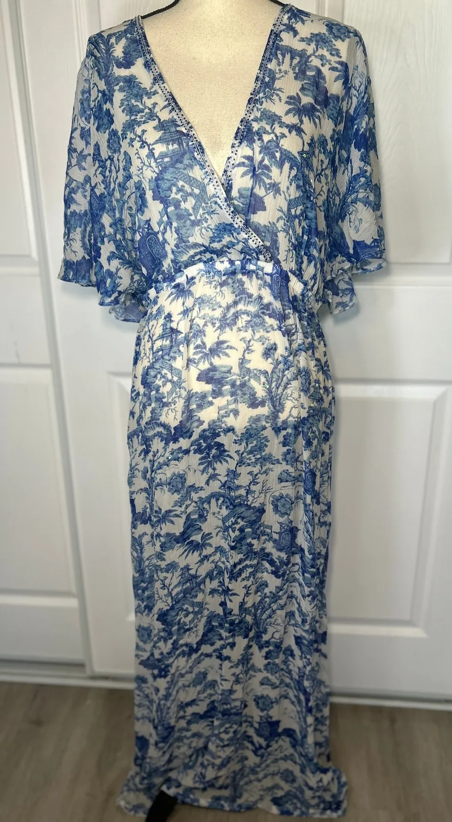 Antonio Melani sheer maxi dress in a striking blue and white toile-inspired print. Size Medium Appr... Show more