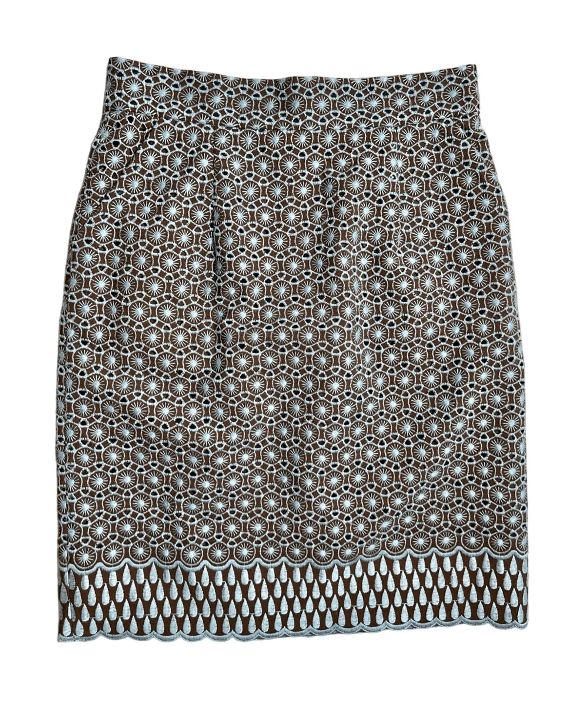 Antonio Melani Brown Blue Eyelet Scallop Hem Straight Pencil Skirt sz 6. Beautiful design and sophis... Show more