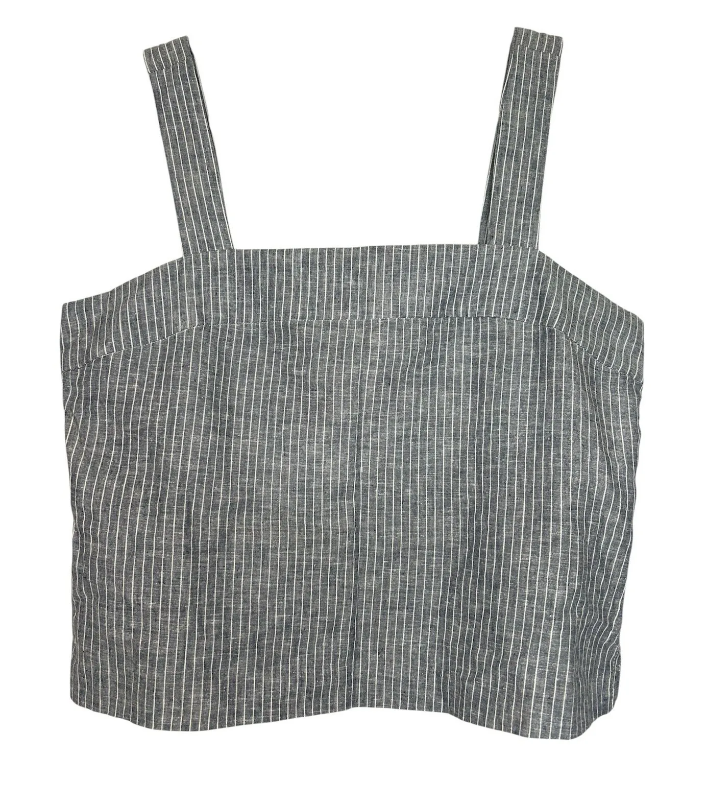 Antonio Melani Size 14 Denim Blue White Striped Linen Tank Top Summer Side Zip. Condition is Pre-own... Show more