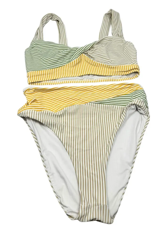 This Antonio Melani x The Nat Note bikini set showcases a chic high-waisted fit with a stylish foldo... Show more