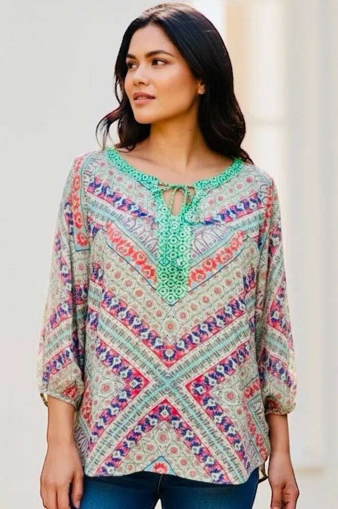 Anthropologie Fig And Flower Top Womens Medium Multicolor Boho Floral Blouse size L Condition: excel... Show more