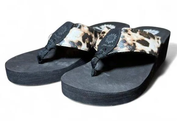 Yellow Box Women's Leopard Print Y2K Wedge Heel Flipflops Size 8 Black - $30 - From Amy