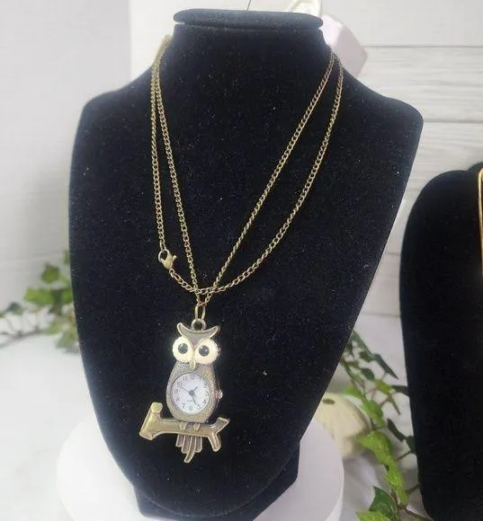 Too cute Working watch pendant Bronze / brass tone pendant and chain necklace Owl on branch pendant... Show more
