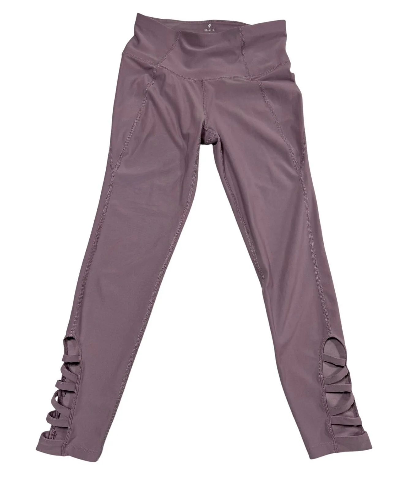 Size: Small Color: Lavender Purple High waisted Lattice strappy cut outs at leg hems Pulls on Buttery soft and stretchy Ankle length Polyester and spandex blend Yoga, gym, training, activewear, athelisure Excellent condition Measurements: 25" inseam 10" rise 13.5" waist