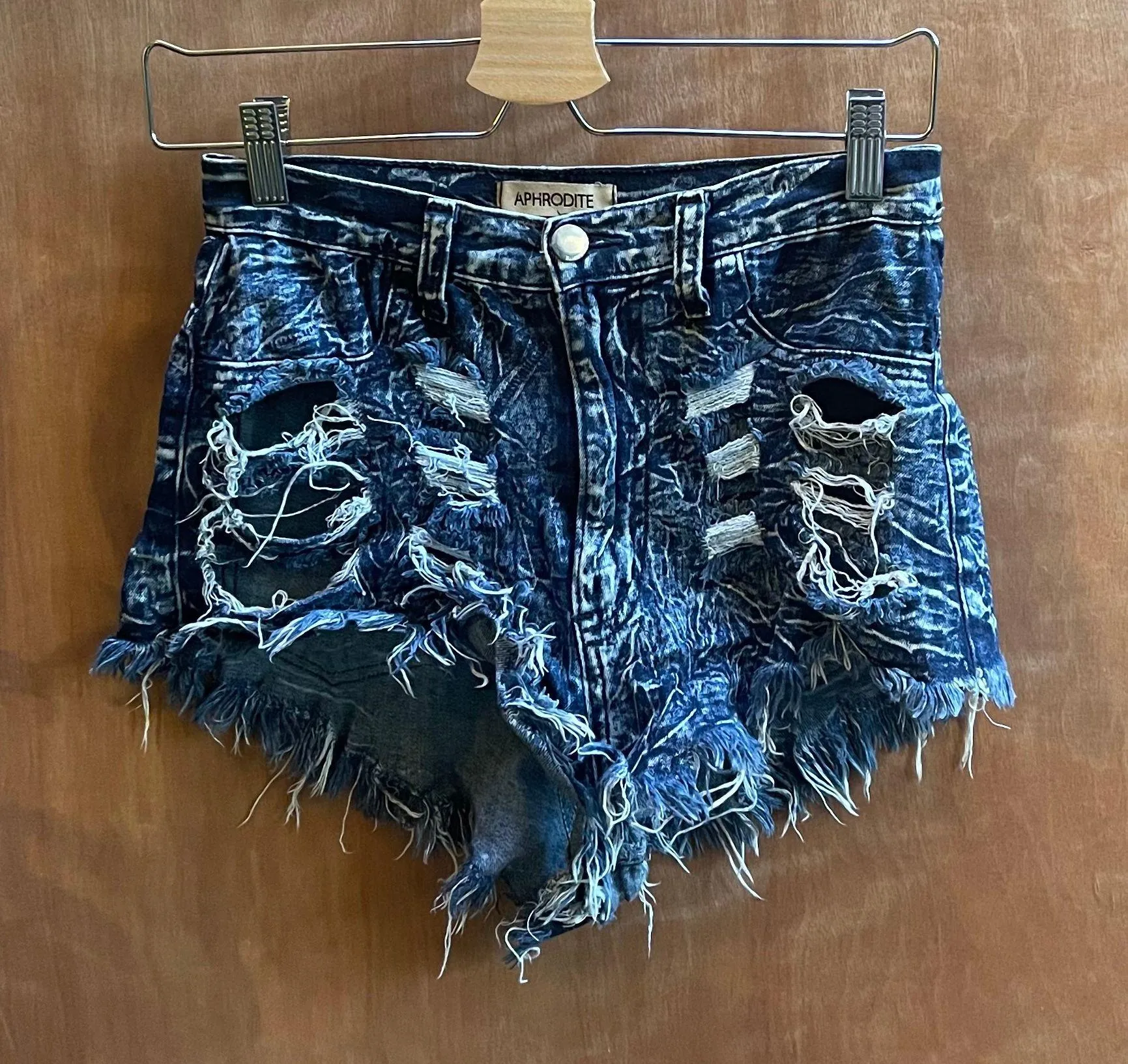 Aphrodite distressed high waisted acid wash denim shorts Size: medium Fit: true to size, has good stretch Condition: good preowned condition, the distressing has more holes and material has slight dirt
