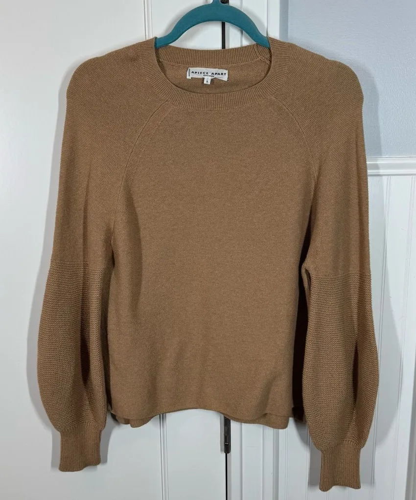 Apiece Apart Cotton Cashmere Tan Camel Sweater Crewneck puff sleeve size small Brown - $75 - From Lauren