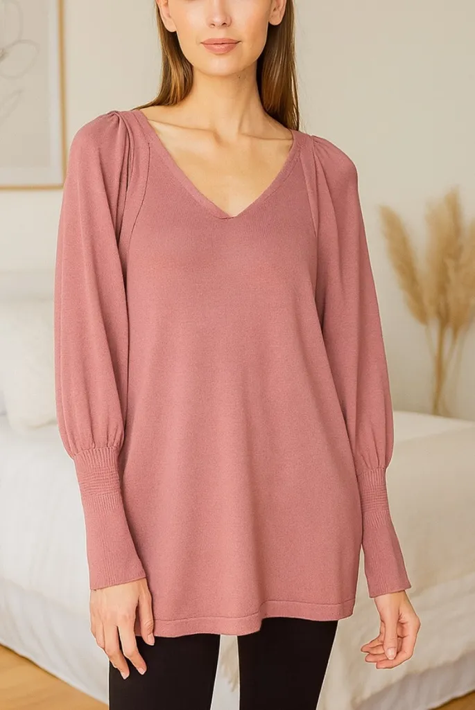 Apiece Apart Mauve pink v neck sweater w/ puff‎ sleeve corset top Size XS - $62 - From Alexandra
