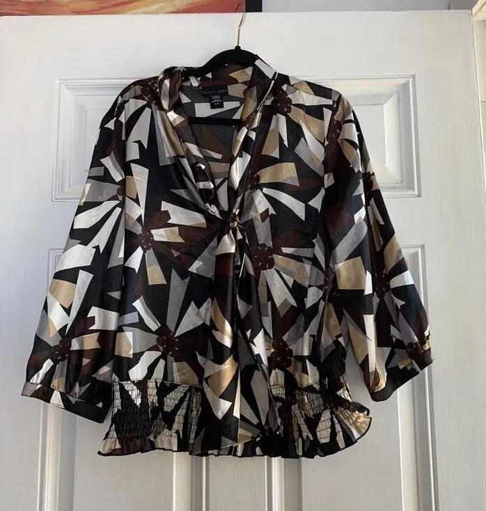 Apostrophe Women's Blouse Top Waist Tie Geometric Brown‎ Grey White Size XL Size L - $13 - From Caitlin
