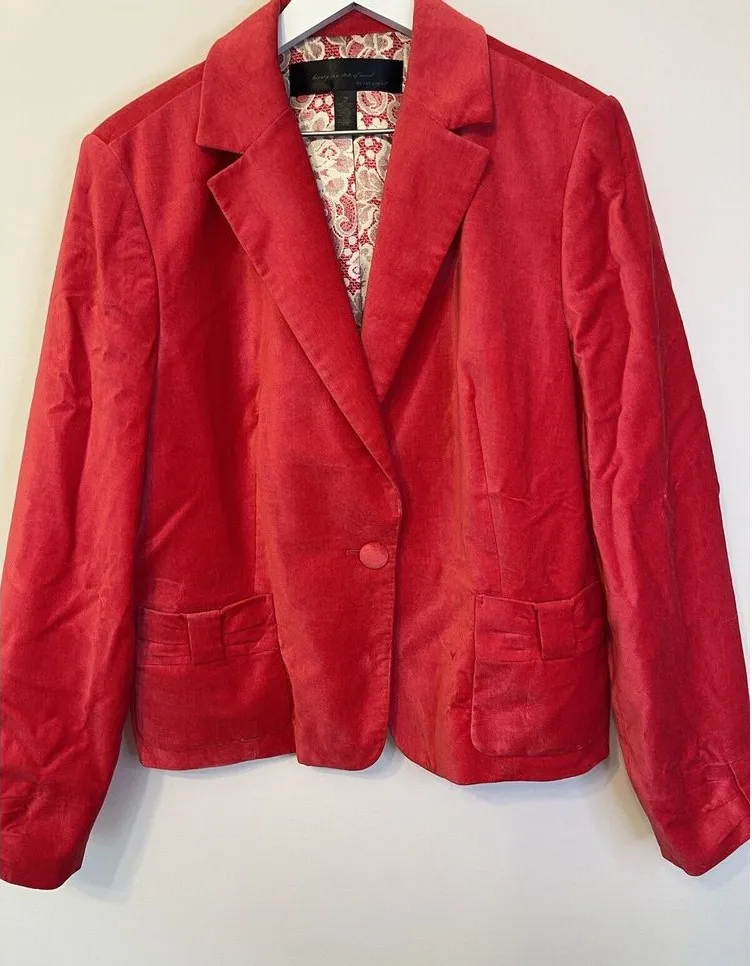 Apostrophe Women's Velvet Blazer Jacket Red One Button Lined Long Sleeve‎ Sz 18 - $34 - From Melissa