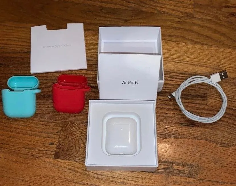Apple AirPods (2nd generation) Comes with two Silicone Cases(Red and Turquoise) Also comes with char... Show more