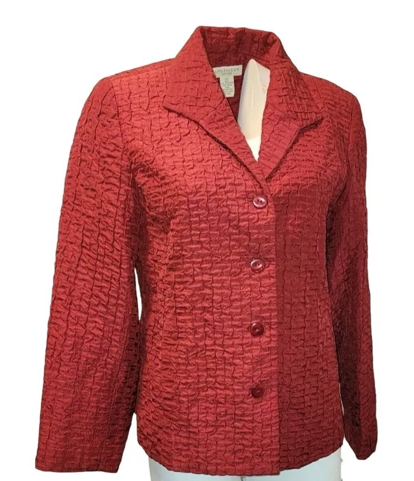 Appleseeds Blazer Jacket Women's Size 14 Red Long Sleeve Textured Classic Career - $18 - From Wild