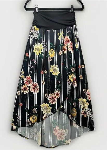 Apt 9 Maxi Skirt Large Black Floral Faux Wrap Hi Low Stripe Pattern Casual Flowy - $20 - From Christina