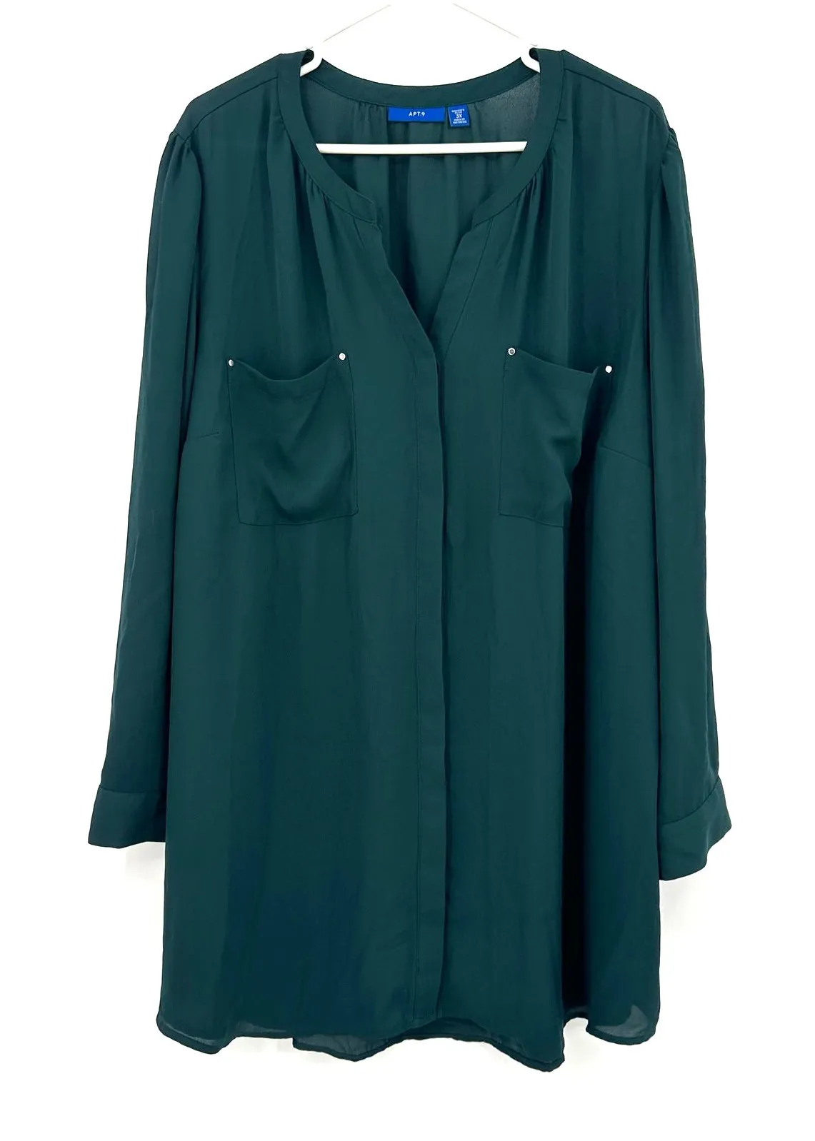 APT 9 Size 3X Blouse Green Hidden Button Up Double‎ Pocket Loose Flowy Workwear - $18 - From Taylor