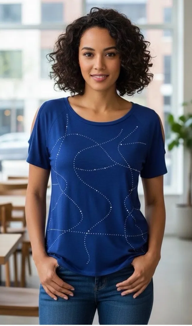 Elevate your casual wardrobe with this chic Apt 9 cold shoulder t-shirt. Dazzling linear embellishme... Show more
