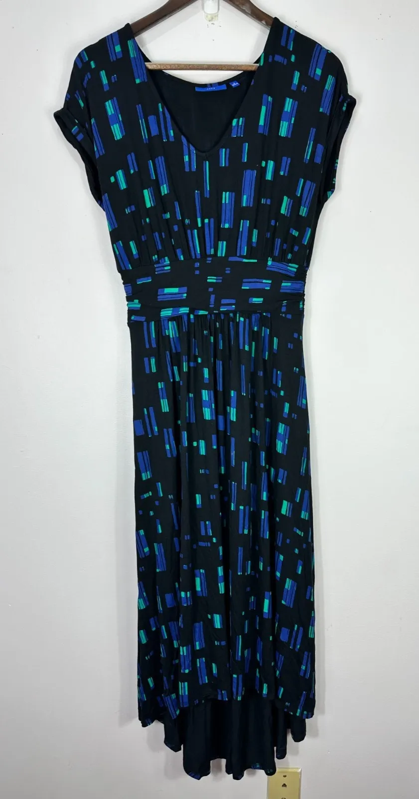 APT.9 Dress Womens Small Black Blue Green Geo Print Midi Stretch Career Retro Stylish and comfortab... Show more