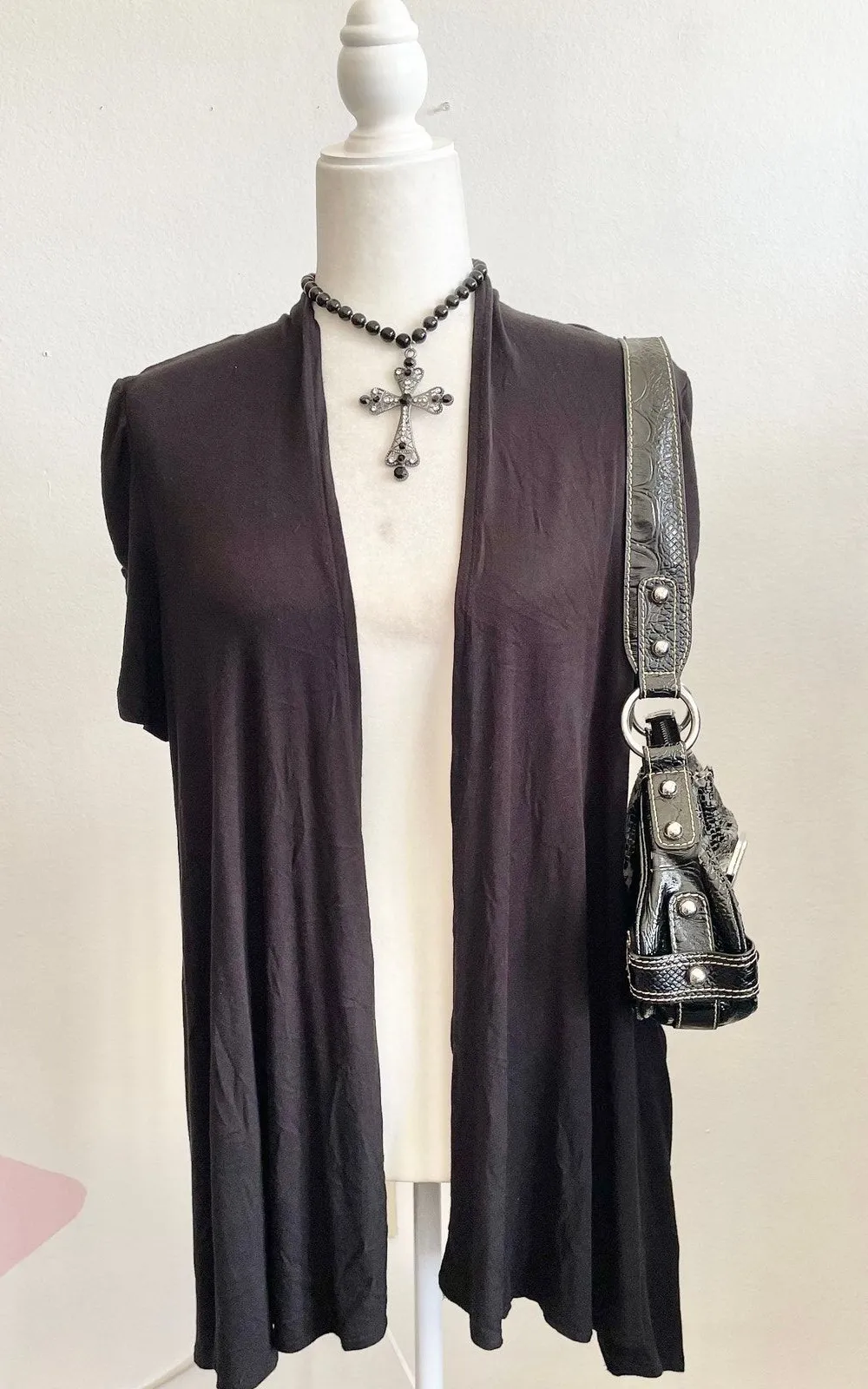 Black Short Sleeve Cardigan Knit Top‎ Vintage Gothic Minimalist Large - $17 - From Kenia