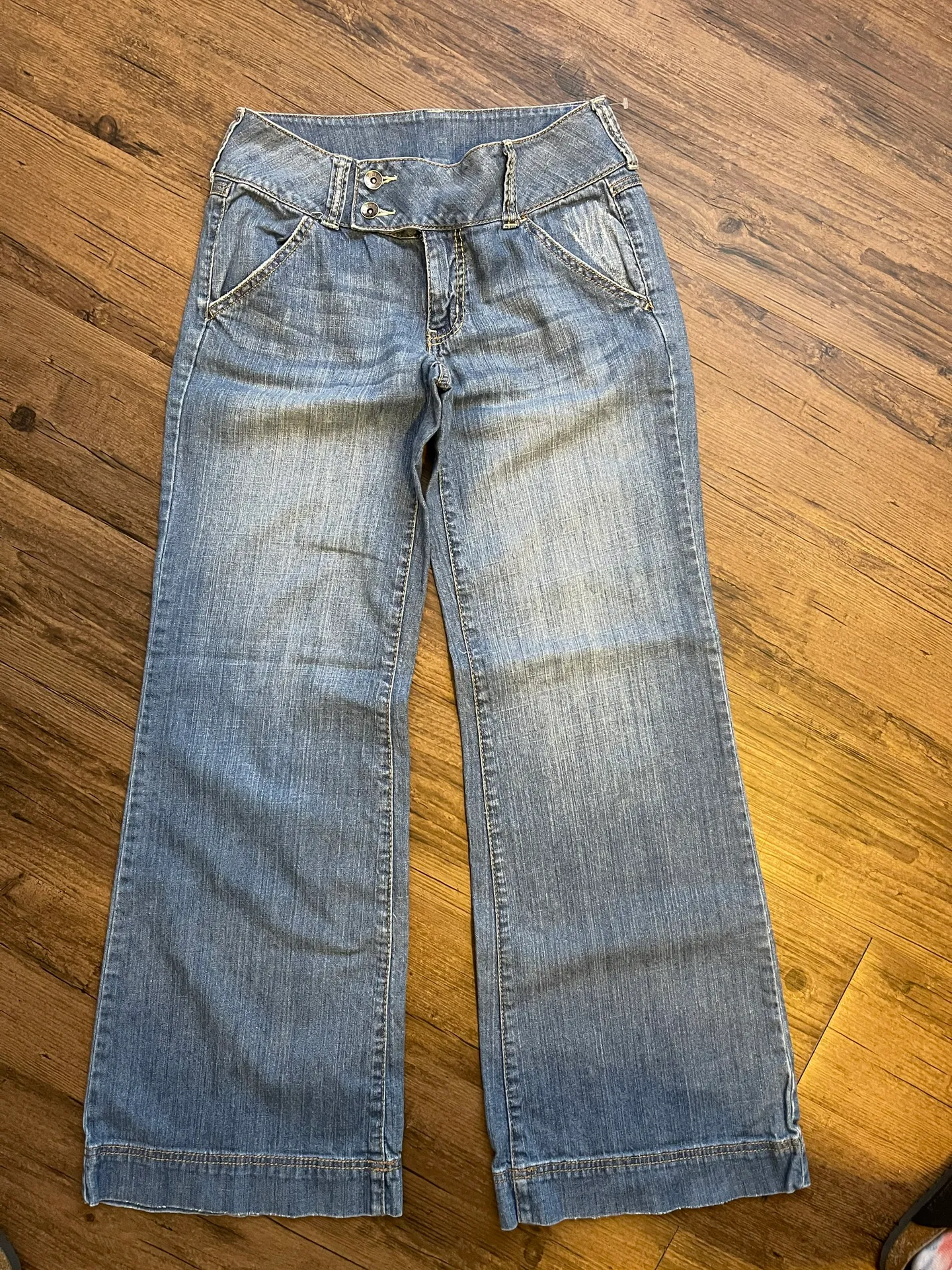 Brand is Apt 9. Wide leg is 10 inches at the bottom. Size 4. Made to sit on hips not waist. Very ver... Show more