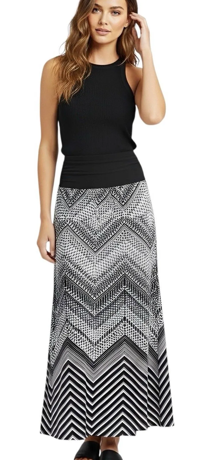 APT. 9 Womens Skirt Sz Small Maxi Boho Bohemian Long Ruched Festival Zigzag Beach Vacation Travel Sp... Show more