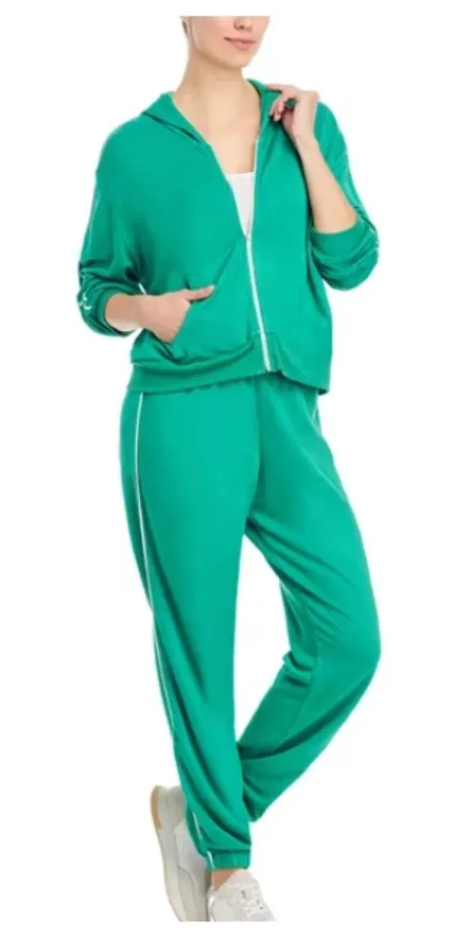Keywords: AQUA Athletic, Green Sweatshirt, Teal Hoodie, Jogger Pants Set, Matching Set, Two Piece Outfit, Women's Activewear, Comfortable Set, Athletic Apparel, Casual Wear, Zip Up Hoodie, Relaxed Fit, Sporty Style, Modal Blend, Size M